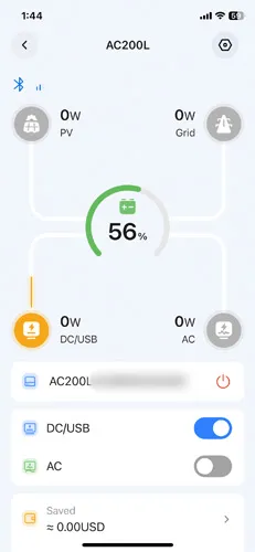 - Grouped Toggle: The device allows separate control of DC and USB, but the app merges them into one toggle, removing the ability to control them independently.